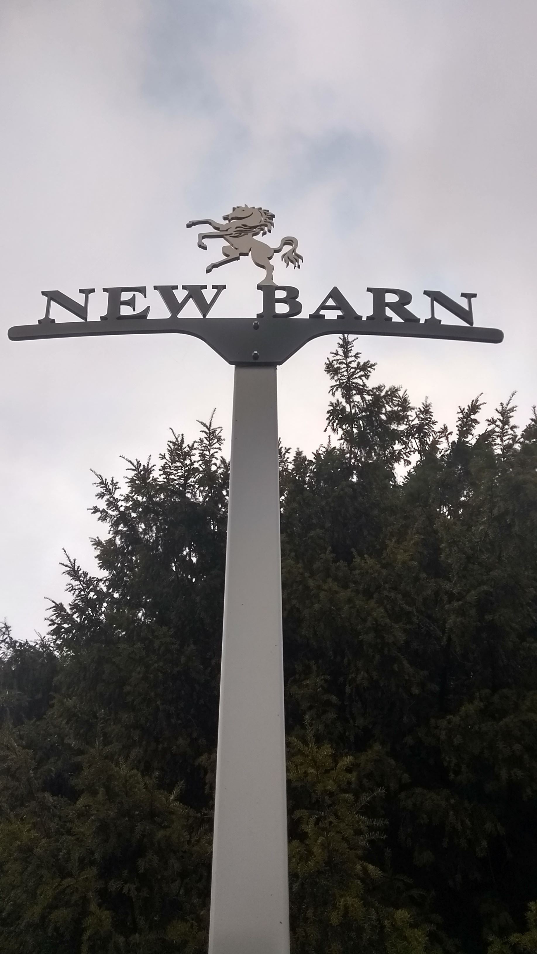 The co-ords are for the New Barn Village sign and not the cache itself. In order to find the cache solve the simple puzzle below.