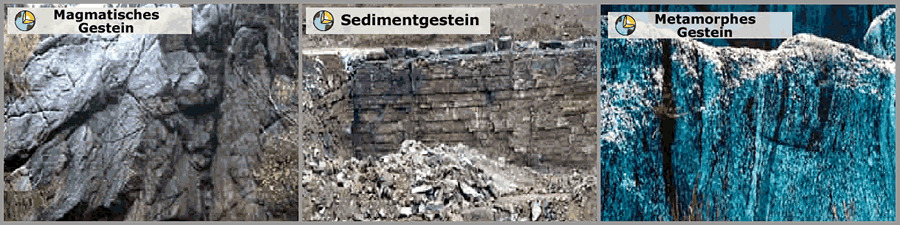 Es finden sich Gesteine aus allen drei Gesteinsgruppen: