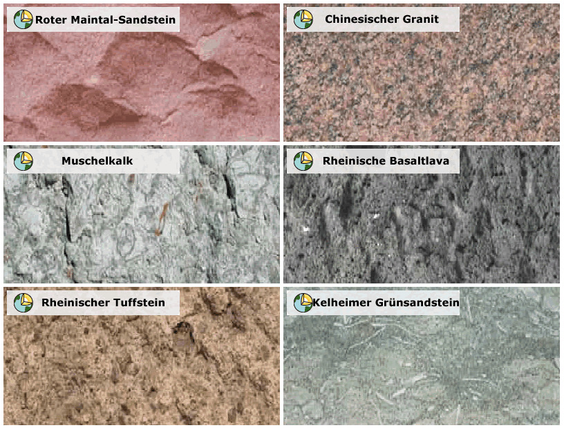 Wir werden zunächst einige Erläuterungen zu Natursteinen allgemein geben, zeigen den Kreislauf der Gesteine und werden uns dann somit auch Schritt für Schritt mit den Gesteinen beschäftigen, die aus den verschiedensten Regionen stammen und hier an den Gebäuden zum Einsatz gekommen sind.