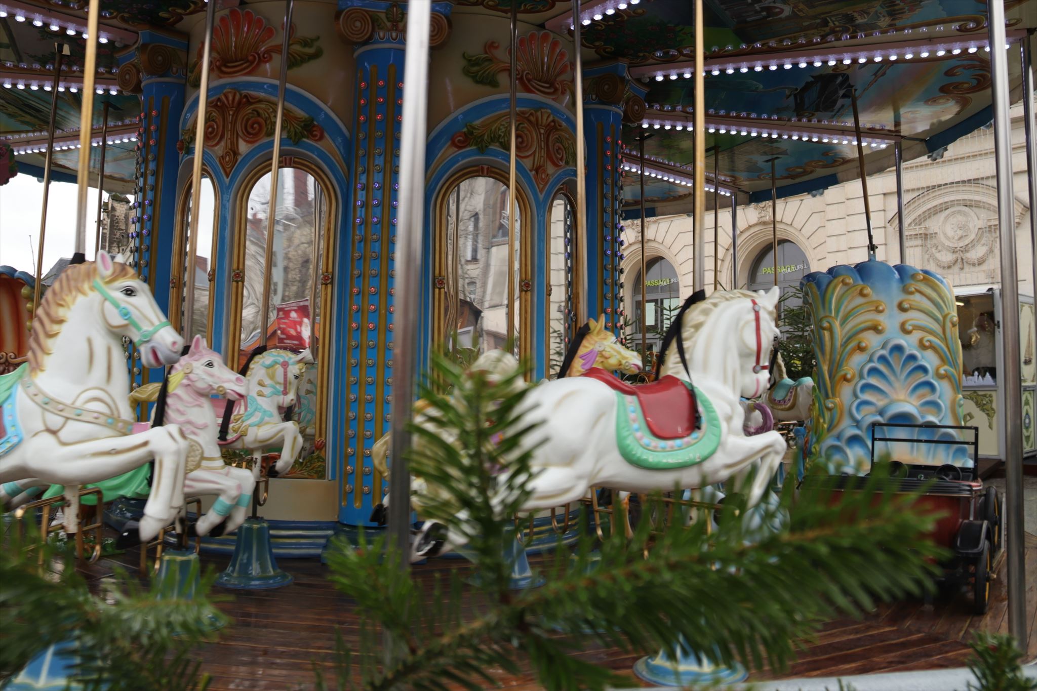 Partie facultative : juste à côté, grimpez sur les chevaux de bois et tournez manège. C'est gratuit pour les petits (et les grands).