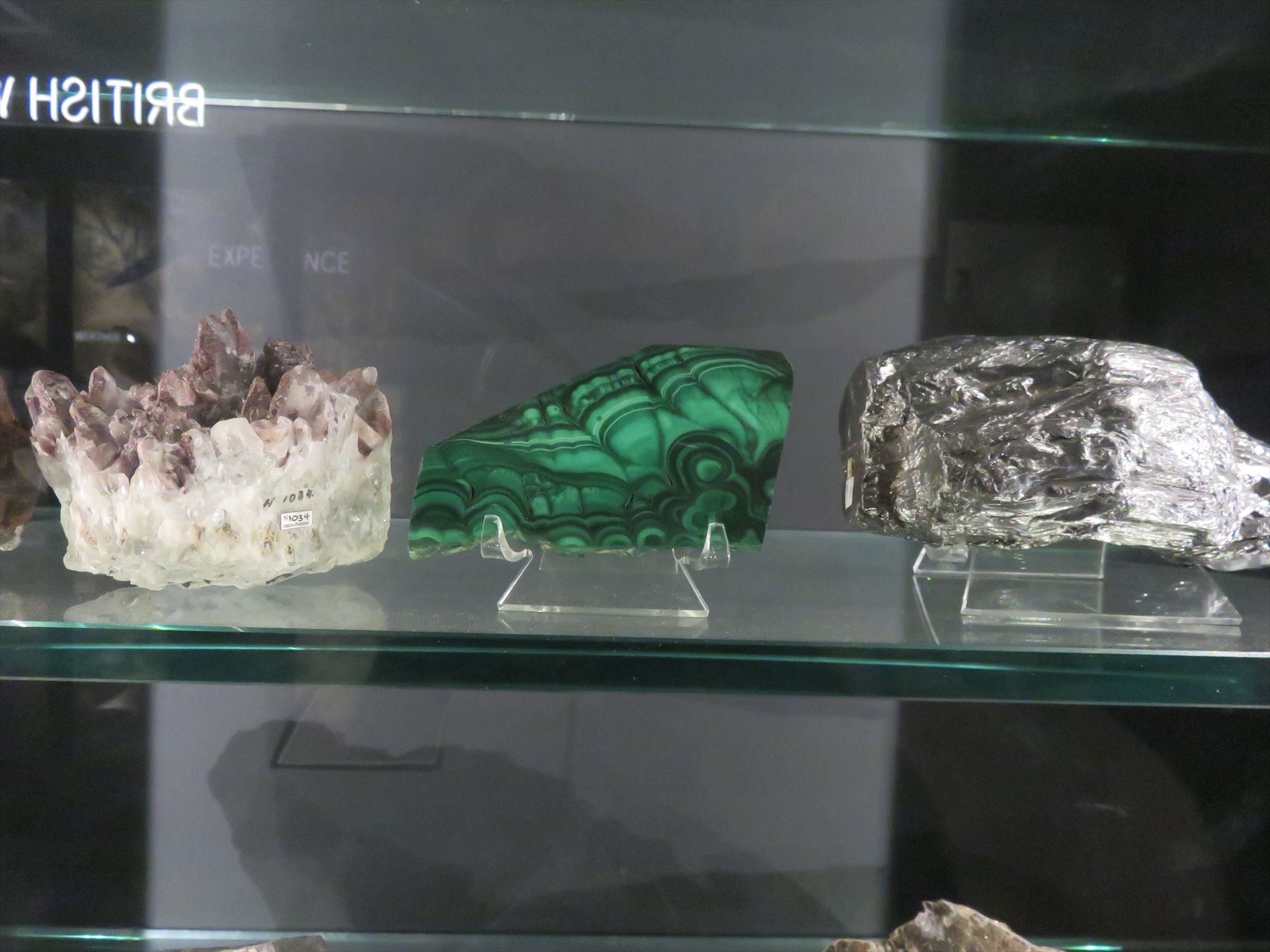In the experience display you will see samples of rock of a wide variety of types. These include various crystalline structures as well as ores and pyrites.