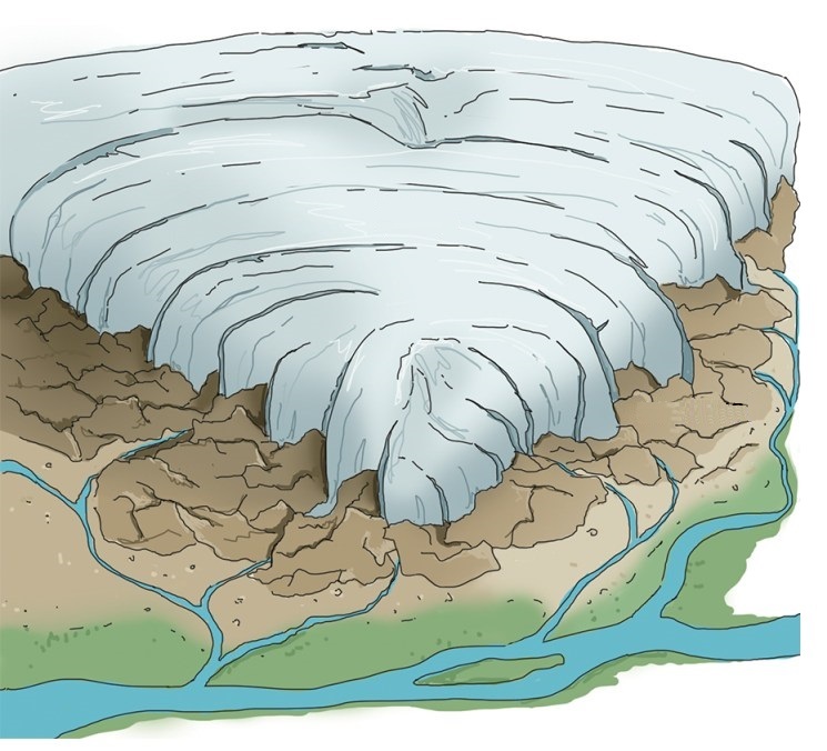 Het smeltwater wat in de zomermaanden ontstaat, kan ook nu niet in de bevroren ondergrond lopen en op de plaatsen waar eerder door het ijssmeltwater de eerste vorming van dalen is gemaakt, stroomt nu het sneeuwsmeltwater en de bovenste laag van de verzadigde grond van de eerder gevormde heuvels naar beneden, met als gevolg dat er nog meer erosie ontstaat en de dalen in de stuwwallen hun definitieve vorm krijgen.