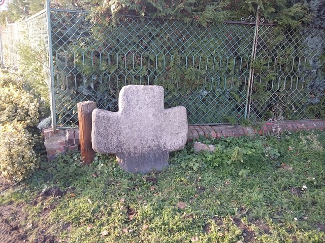 Krzyż pokutny znajduje się nieopodal kościoła św. Jana Chrzciciela, przy skrzyżowaniu ul. Kolejowej i ul. Kościelnej. Krzyż o wym. 103 cm x 100 cm x 7 cm został wykuty ok. XV w. Nie ma żadnych informacji na jego temat, ani legendy, która przybliżyłaby historię z nim związaną. Jedyne czego można się domyślać, to narzędzie zbrodni. Powyższy krzyż ma na sobie nieduże pęknięcie przypominające swym wyglądem grot włóczni.