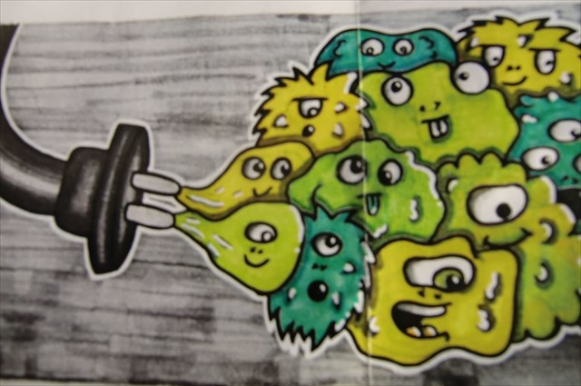 Grüne Energie (oder so ähnlich) nennt der Künstler sein Werk, das er Anfang Februar 2020 innerhalb von 3 Tagen bei Winterbach erschaffen hat. Sein Entwurf auf Papier sah wie folgt aus: