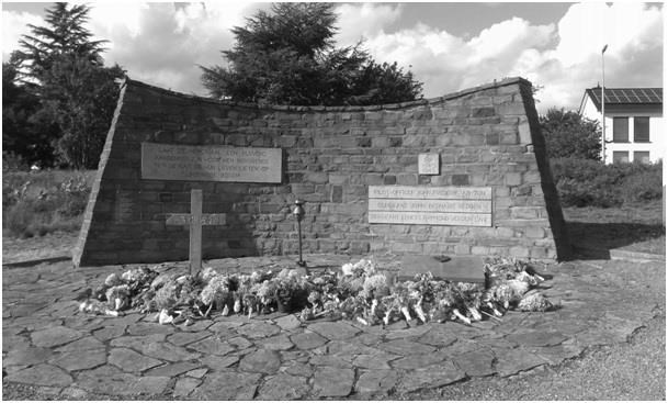 Het eerste monument was simpelweg de, met keien omzoomde, graven in de heidevlakte met en een kruis gevormd met witte keien. Er lagen toen al reeds bloemen op de graven.