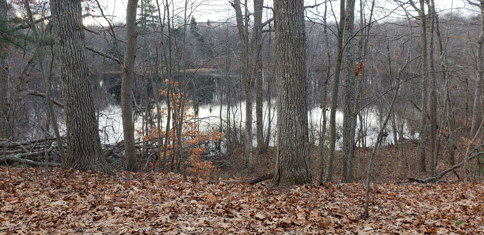 The Oak Knoll Sanctuary in Attleboro should more appropriately be called Oak Knolls. As you make your way down Woody’s Way you will find yourself ascending and descending a number of small knolls, all covered in oak trees (hence the name of the Sanctuary). Once you reach GZ you’ll be at the Sanctuary’s highest elevation. What a beautiful view of Talaquega Lake and many small knolls on two sides of the lake! You’ll find a bench there…good for taking a moment to enjoy the view!