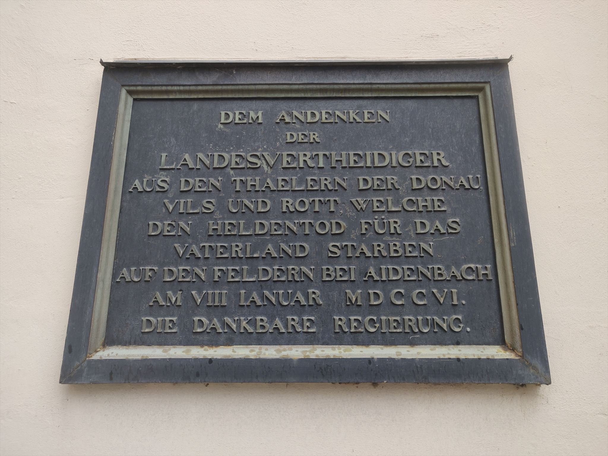 Den Ort Aidenbach kennen wohl die meisten Münchner nur von einem Straßennamen und dem zugehörigen U-Bahnhof. Tatsächlich aber fand dort eine Schlacht im Zuge der bayrischen Revolution statt, deren wohl bekanntestes Einzelereignis die sogenannte Sendlinger Mordweihnacht von 1705 war. In Sendling wurden einige Straßen nach beteiligten Personen und Orten benannt, an denen diese Auseinandersetzungen kulminierten. Erinnert sei in dem Zusammenhang beispielsweise an die Schmied-Kochel-Straße, Passauerstraße, Hofmannstraße, Plinganserstraße, Daiserstraße und Senserstraße für die beteiligten Personen – an die Aidenbachstraße, Gotzinger Platz und Straße, Valleyplatz und -straße für die Ortschaften.