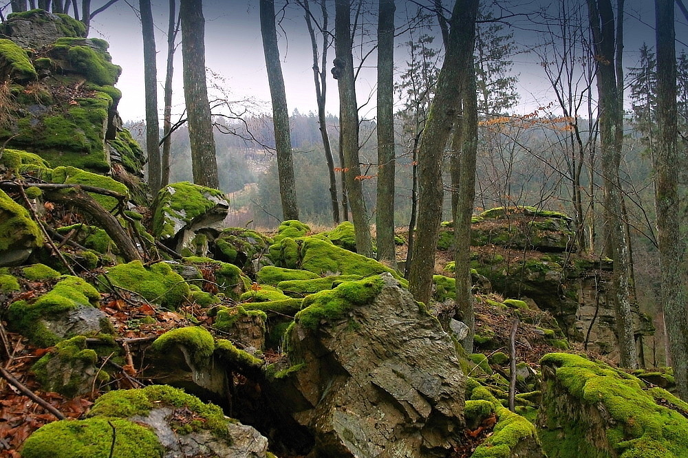 Jde o biocentrum druhové rozmanitosti listnatého lesa uprostřed smrkových monokultur. Mimo habr a jasan jsou vtroušeny staří jedinci smrku a buku. V podrostu se pohybují skalní plži a mlok skrvnitý. Budete-li mít štěstí můžete zahlédnou 200 hlavou populaci muflonů. V území se vyskytují pozoruhodné skalní útvary (mrazové sruby, skalní stěny i plošiny, balvanové proudy). K přístupu do těchto míst využijte nejlépe parking u Rampírových skal s tzv. Hraběnčinou vyhlídkou (schodky) a vydejte se vrstevnicovou starou kamennou cestou k Černovicím. Pokud lov spojíte s "Šamanovou vigílií" keš neminete...