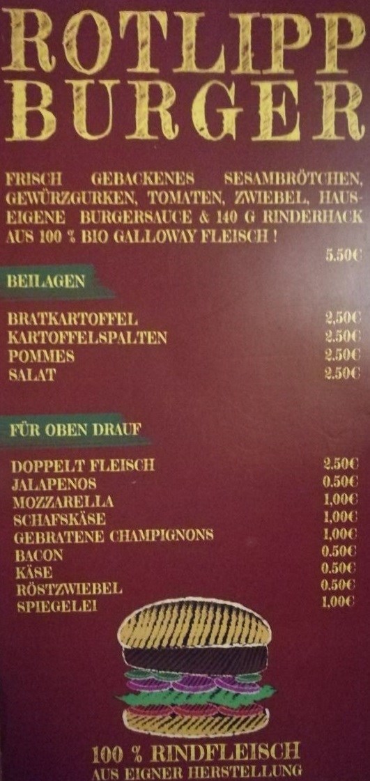 Essen gibt es a la Carte. Die Speisekarte könnt ihr auf der Homepage des Landgasthof Rotlipp einsehen.