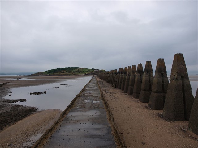 Cramond Island is situated in the Firth of Forth just NW of Edinburgh. The island measures roughly 1/3 mile long and slightly less in width. It contains a ruined farm building and a variety of wartime defence structures. There are magnificent views over the Forth estuary including towards the old Forth railway bridge. An unusual feature is the line of pylons running alongside the causeway, reputed to be defences against enemy vessels getting through at high tide.