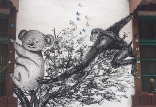 In order to find the cache, it is adviceable to find Monkey's home, see photo below. The cache is hidden less than 20m far away from this place (stage 2). Also have a look at the "corner kiss".