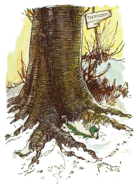 When Christopher Robin asked the Piglet what it meant, he said it was his grandfather's name, and had been in the family for a long time. Christopher Robin said you couldn't be called Trespassers W, and Piglet said yes, you could, because his grandfather was, and it was short for Trespassers Will, which was short for Trespassers William. And his grandfather had had two names in case he lost one — Trespassers after an uncle, and William after Trespassers.
