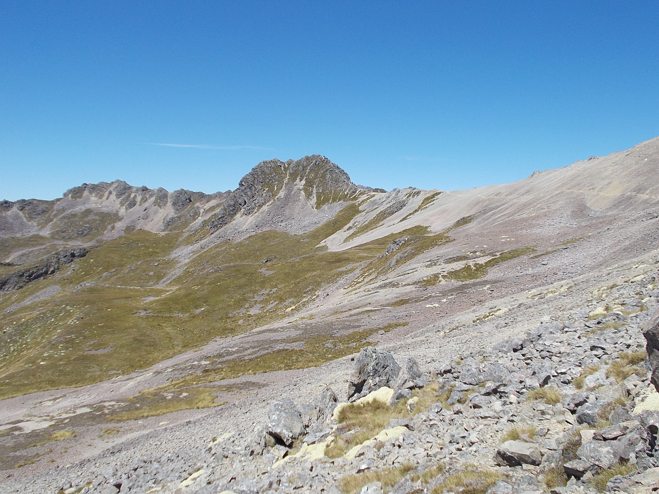 An often bypassed small peak on the Robert Ridge in Nelson Lakes National Park. This is just off (10 minutes) one of the main routes to Lake Angeles. Best access is from the Mt Robert carpark via the Pinchgut Track to the Robert Ridge and follow the route into Lake Angeles. You will climb to a broad saddle to the base of the peak, with a short 10 minute scramble to the summit and cache. All up it should take approx 2.5 hours from the Mt Robert carpark to GZ.