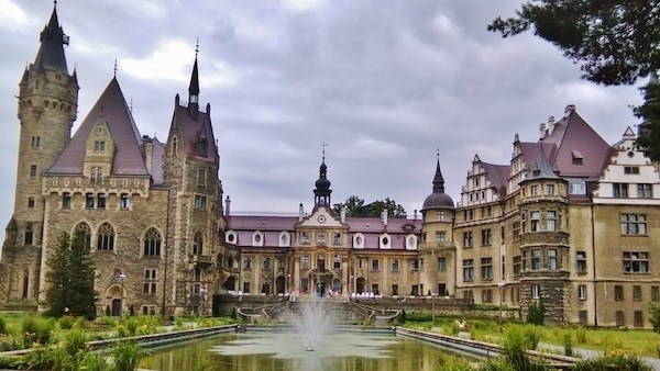 Zámek známe jako budovu, např. zámek Mošna kousek za hranicemi v Polsku: