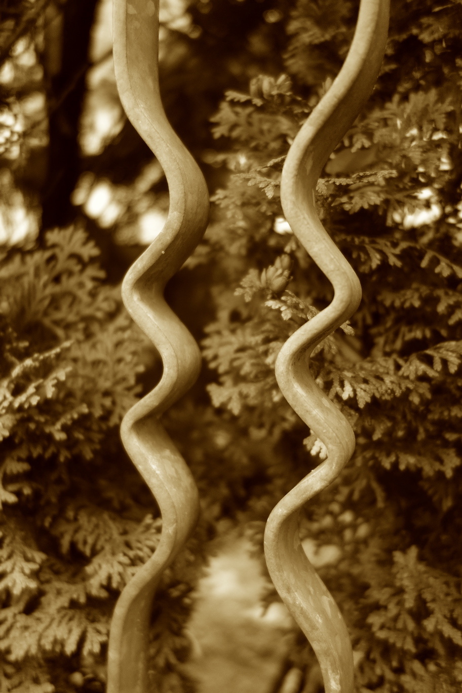 Kommt mir der Zaun bekannt vor ? Interessante Arbeit auf jeden Fall. Wie Zwillinge. Werde ich mir als Idee für mein Atelier merken. Vielleicht als Wisente oder Kasuare ?! Puuh, hier geht's ganz schön runter. (Hinweis: Ihr steht unter der größten Platane von Großauheim)