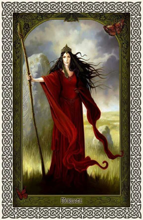 As lendas baseadas nos contos do Rei Arthur acreditam que Morgana foi uma sacerdotisa da Ilha de Avalon, na Bretanha, meia-irmã de Arthur. É filha de Igraine, e Gorlois, Duque da Cornualha.
