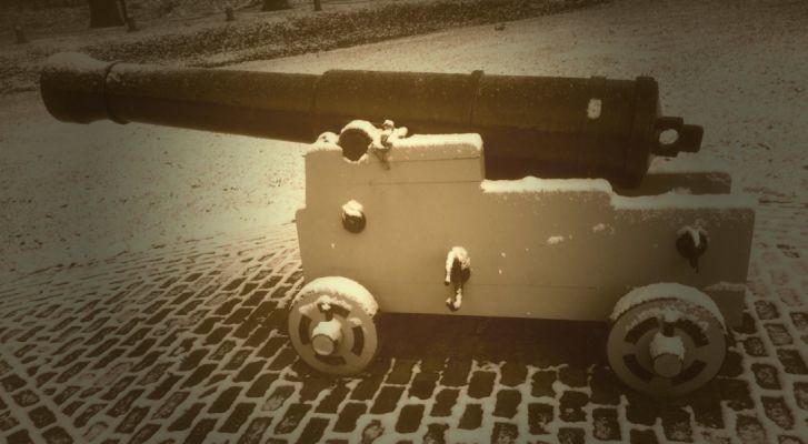 Hoeveel kanonskogels zitten er in de muur? Antwoord is M.