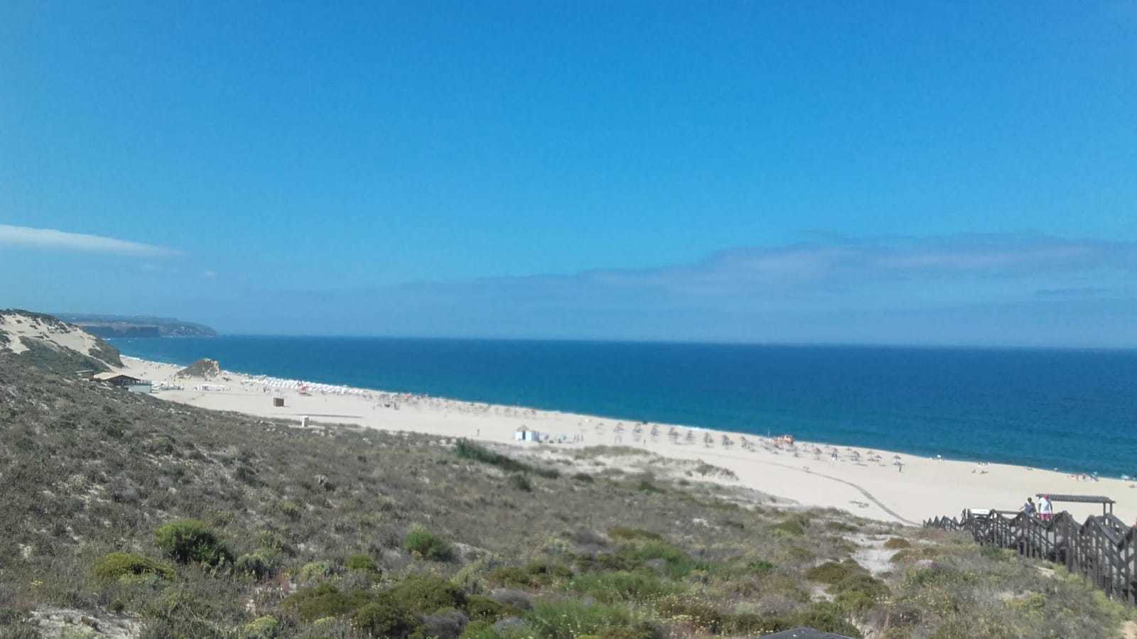 Apresenta um areal muito extenso com cerca de 1 Km. Existe um sistema de grandes dunas junto ao Perímetro Florestal da Mata da Amieira.