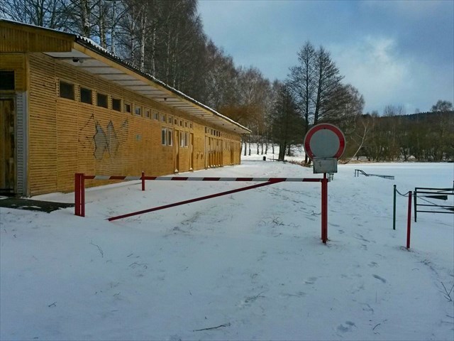 Takže z několika těch kusých informací, vám sdělím, že rybník má údajně v nejhlubším místě 16 metrů. Moc se nám tomu nechce věřit, ale je fakt, že na některých místech poblíž hráze je fakt dost hluboký. Kdo ho kdy vybudoval, nevíme. Když nám tuhle informaci někdo sdělí, jakož i cokoliv jiného o místě, rádi se o to s vámi podělíme. Víme, že ubikace (to je ta žlutá budova) pochází někdy z 60ých let minulého století. A bohužel i podle toho vypadá. Dříve patřila organizaci Svazarm. Ale my jí máme rádi, i když už ani jako ubikace neslouží. Nicméně my, stanaři a karavaňáci, tu máme nezbytné zázemí. A je zde umístěno i fajn občerstvení, kterému vládne věčně usměvavá paní Markéta. A vlastně i díky jí vděčíme za to, že sem ještě můžeme jezdit i když...i když tu vlastně nic není :-). Stejně je to bod ve vesmíru, který bychom nevyměnili za nic na světě...