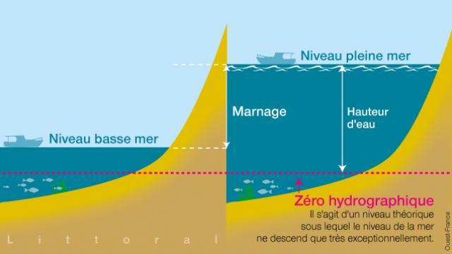 The tidal coefficient expresses the amplitude of a tide, so it measures the difference between high tide and low tide and is thus not a measure of the height of water. This coefficient is between 20 and 120, 120 being the maximum. High tides occur when the moon and the sun are in the same axis, so they follow cycles of 28 days that correspond to the time required for the moon to turn around the earth.