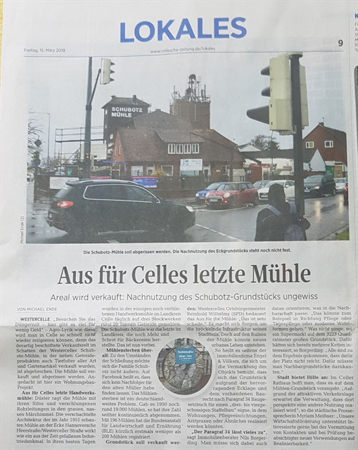 Begonnen hatte Hans Schubotz 1951 mit der Herstellung von Futterschrot. Nachdem ein Kohle- und Brennstoffhandel folgte, wurde 1962 dann der Bau zur richtigen Mühle vollzogen.