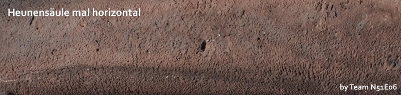 Auf dem Boden rundum der Säule seht ihr 2 unterschiedliche Gesteine gepflastert, die zur Klasse der Ergussgesteine gehören. Diese weisen erhebliche Unterschiede zum Sedimentgestein "Sandstein" der Heunensäule auf.