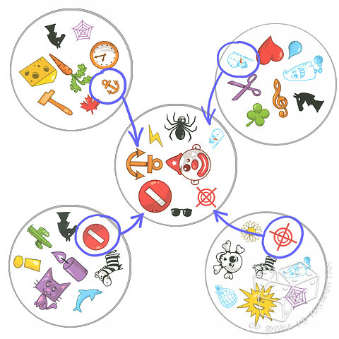 Dobble to wieloosobowa gra zręcznościowa o bardzo prostych zasadach w której przede wszystkim liczy się spostrzegawczość i refleks. W Dobble można grać na klika sposobów. W zasadach można znaleźć pięć mini-gier. Najpopularniejszą jest wersja, w której wszystkie karty rozdaje się graczom, a jedną z kart kładzie się na środku stołu. Na dany sygnał gracze patrzą na pierwszą kartę z góry, którą trzymają w ręku i szukają wspólnego symbolu z kartą, która leży na stole. Symbol nazywają głośno i szybko kładą swoją kartę na stole, przykrywając starą kartę. Teraz każdy z graczy musi znaleźć wspólny symbol z nową kartą! Wygrywa ten, kto pierwszy pozbędzie się kart. Aby utrudnić zabawę symbole na kartach bywają odwrócone i miewają inne rozmiary. Same karty są okrągłe i pełne kolorowych ilustracji roślin, postaci i przedmiotów, a każda z nich jest unikalna i łączy się z innymi kartami jednym i tylko jednym symbolem.