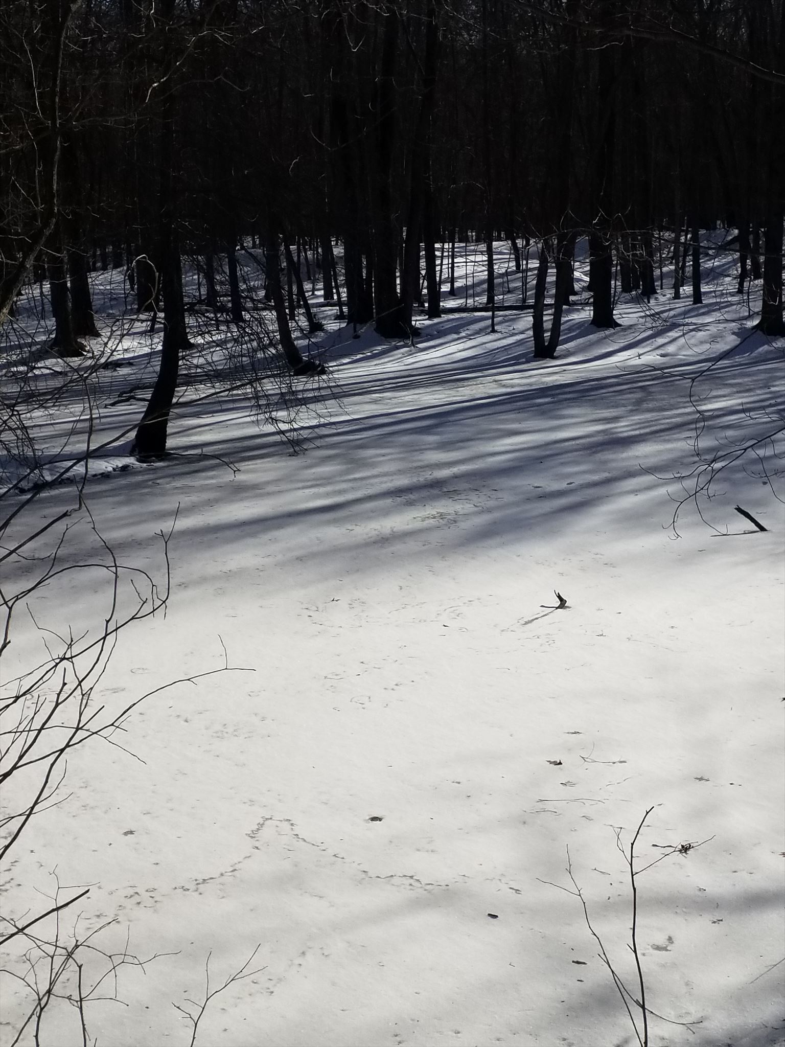 The winter season provides a clear view of the pool in all its enormity. It also offers some insight into the pool’s etiology. Persons completing this Earthcache should pay close attention to the slight knolls on the western side of the pool, and the suggestions they provide as to how this pool came into existence. Doing so will give you some evidence to include in your answer to Question 2.