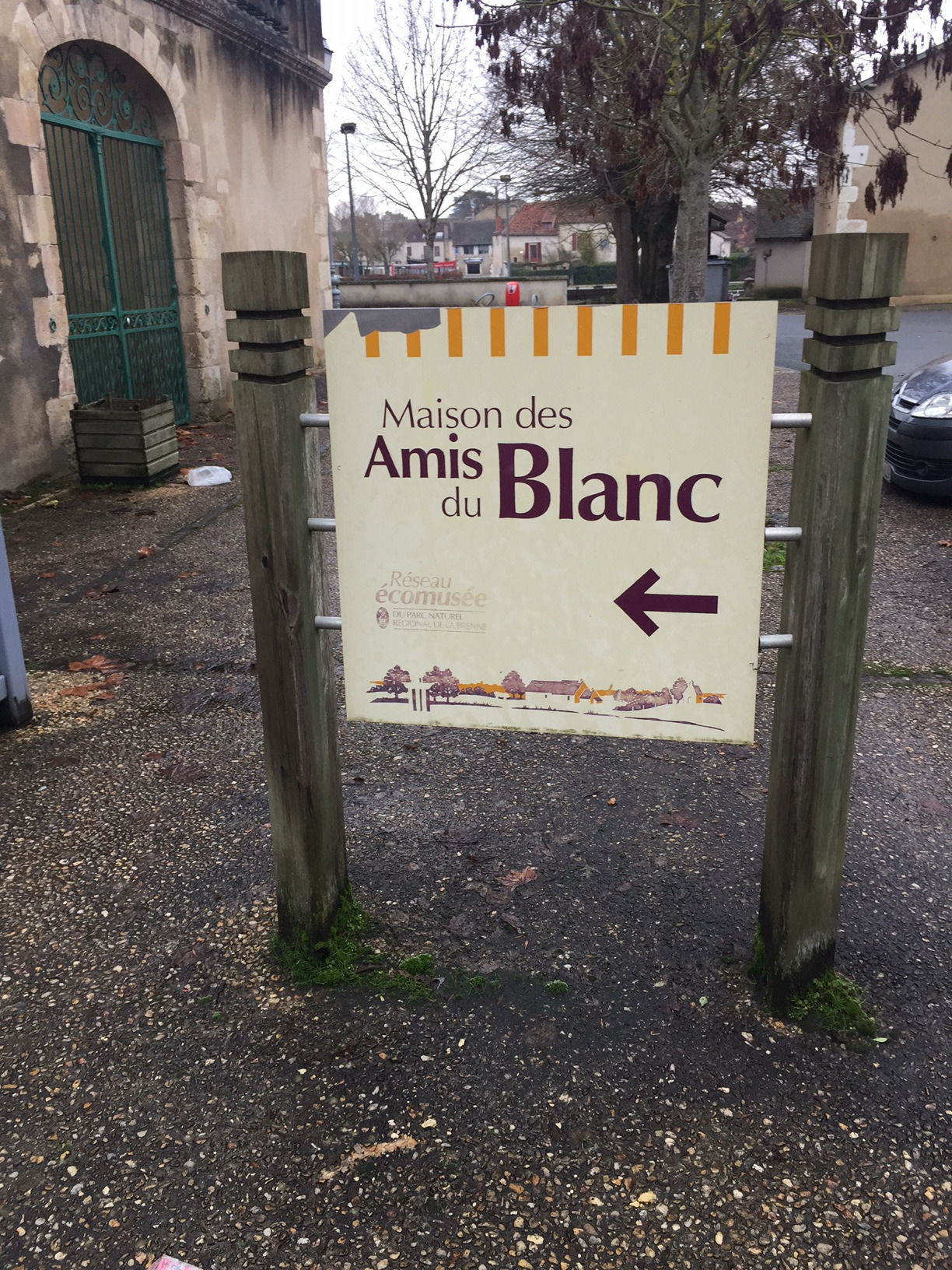 Face au panneau indiquant la maison des amis du Blanc, vous avez une fontaine. Combien de pierres composent la structure ? =A