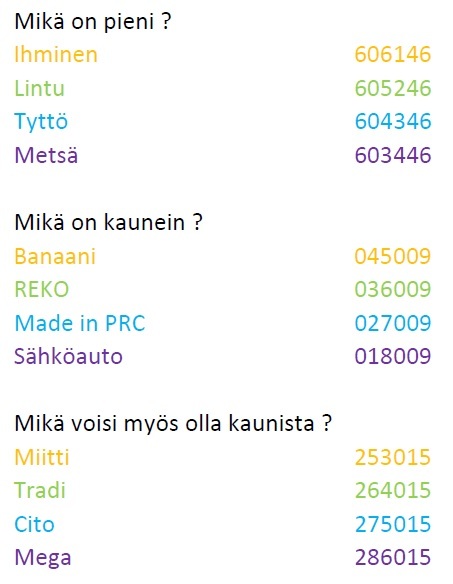 Mikä on pieni ? Mikä on kaunein ? Mikä voisi myös olla kaunista ?
