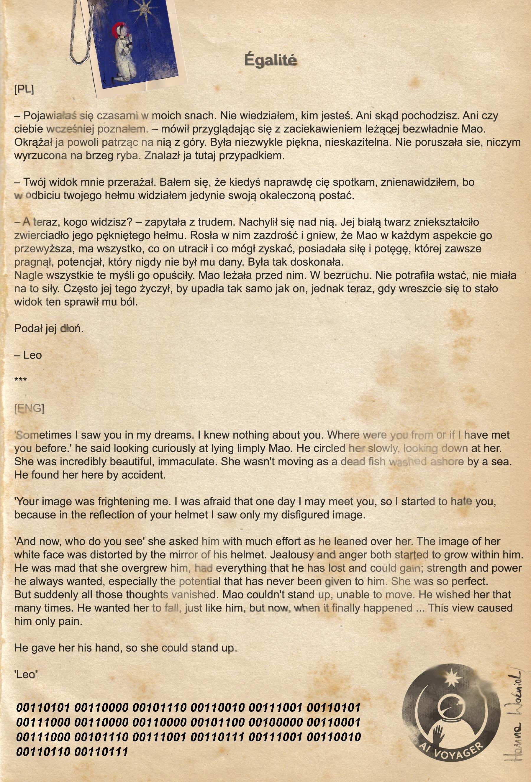 Everyone has a chance to become a traveller and discoverer, and just like Mao, Leo and Major Tom (astronauts whose fate we get to know in a series of short stories) commit to surrounding us space. Feel the littleness of us to the Universe all around; remind ourselves that we are in a constant move and constant journey until the very end.