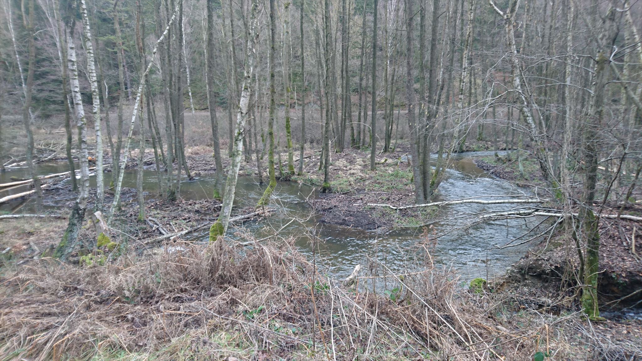 Sie fließen nicht nur einfach bergab, nein sie fangen plötzlich an sich zu winden. Man spricht hier von der Mäandrierung des Flusses. Das Wort Mäander stammt aus dem griechischen Namen Maiandros. Dies ist der Name eines Flusses in Ionien (Kleinasien) in der heutigen Türkei. In Anlehnung an seinen Flusslauf wurde seit der Jungsteinzeit in vielen Bordüren von Gewändern oder an Gebäuden dieses Ornament verwendet. Auch hier im Hürtgenwald finden wir ein solches ausgeprägtes Mäander.