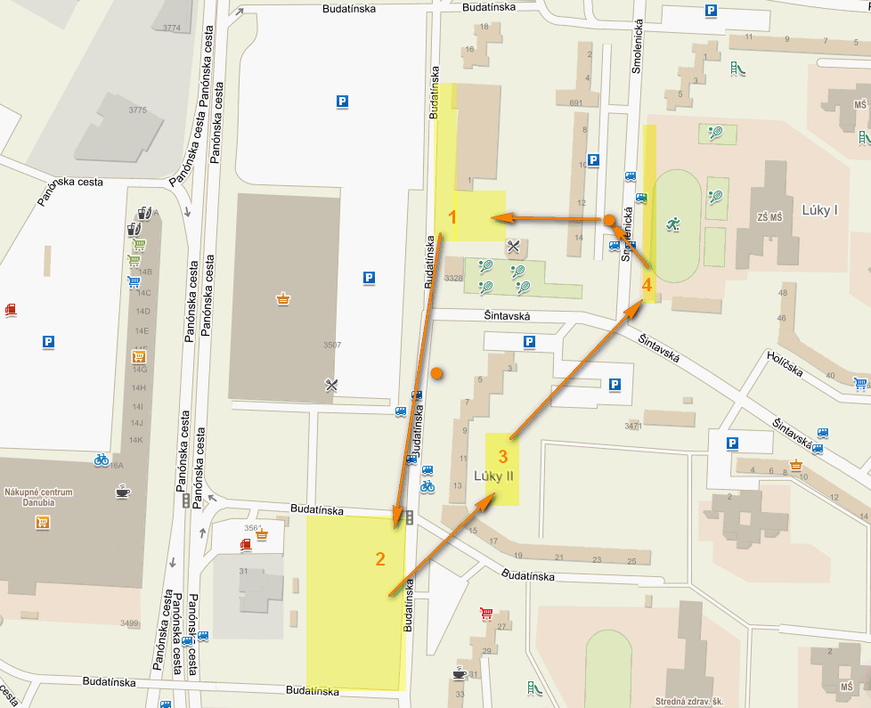 - na lúke pri čerpacej stanici a predajni áut (Budatínska ulica)