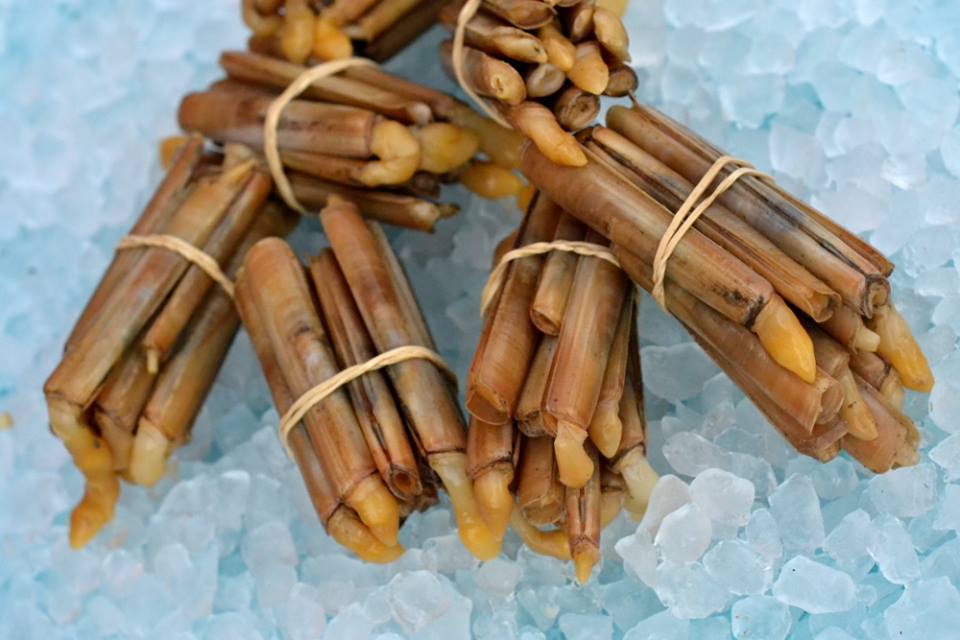 És un mol·lusc de dues valves que s'enterra en fons fangosos o sorrencs i s'acostuma a trobar entre els 5 i 27 m de profunditat. Es pot reconèixer per la seva forma allargada i rectangular. Sol ser de color marró clar i la carn també és allargada i blanca. Es consumeix al vapor amb una mica d'oli i pebre blanc.
