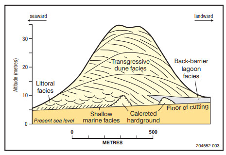 -Can you see any variation in the cut surface condition, colour, sand size, gravel or rock from seaward (west) to landward (east)?