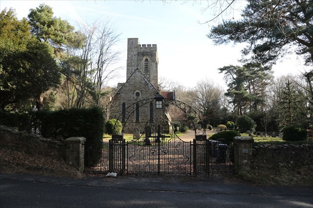 The churchyard is sheltered by the surrounding trees of the Ashdown Forest, and is still used for burials and for the interment of ashes in the garden of remembrance. Most of the grave monuments are modest, and many graves have no headstone; but on the North side of the church there are three large and impressive monuments to the Eckstein family created by Sir William Reid Dick. The most poignant is the bronze statue of young Hermione Beatrice Eckstein.