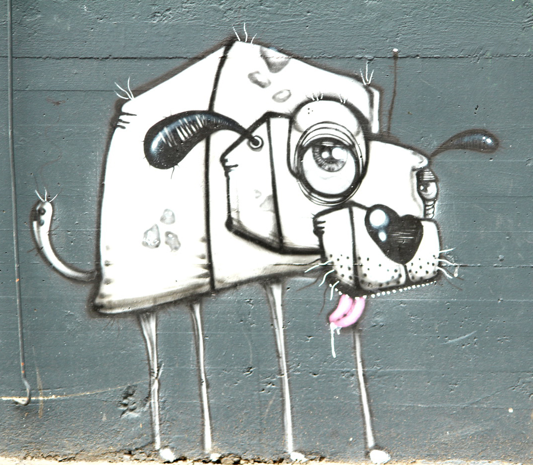 Op de parkeerplaats, tijdens het inparkeren, viel het oog van Herr Vectra op een, in zijn ogen, lelijk stukje graffitty. Op de zijmuur van de plaatselijke Plus was met grote letters een of andere code gespoten met een spuitbus. Herr Vectra sprak er grote schande van. “Ze spuiten maar en alles verloedert, grmbl, grmbl, grmbl $%#@”.