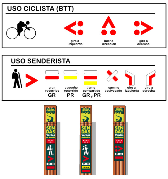 El recorrido senderista tiene zonas comunes con el trazado para bicicleta. En estas zonas habrá que extremar la precaución. En los sitios en los que haya desdoblamiento para BTT por ser incompatibles los trazados para senderismo y bicicleta, caminaremos por el trazado senderista.