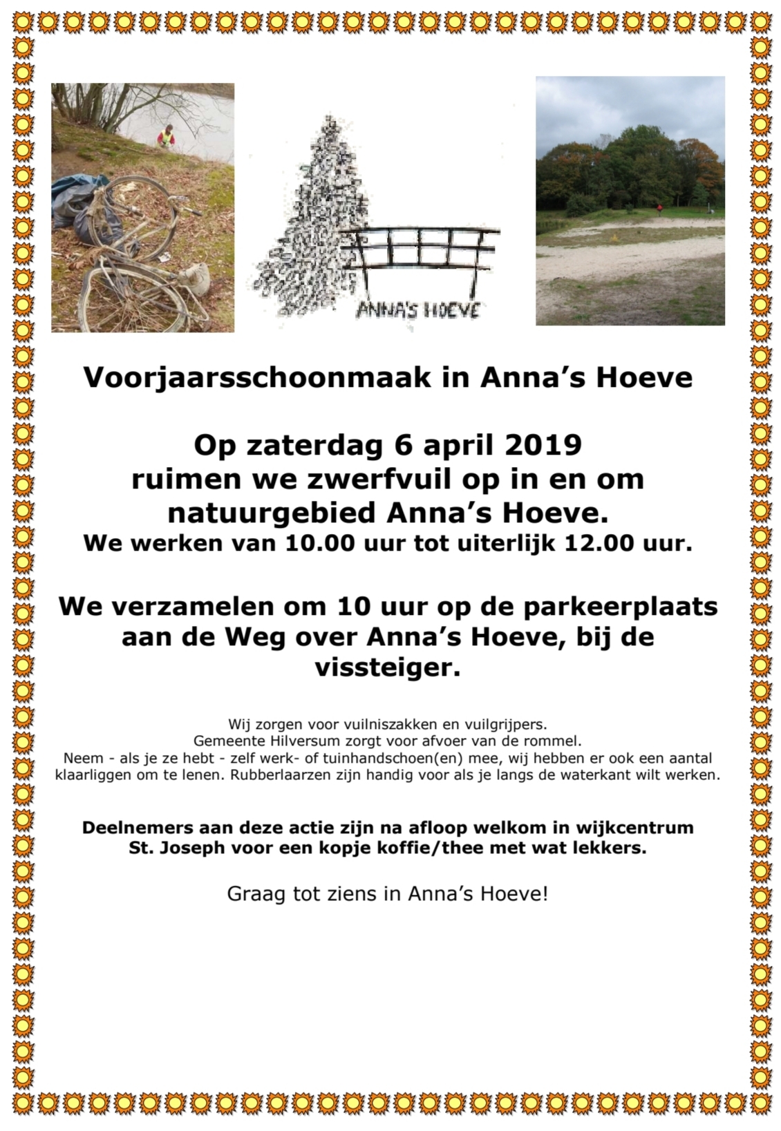 Welkom bij deze actie van 10 tot 12 uur om zwerfvuil op te ruimen in Anna's Hoeve en omgeving.