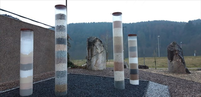 Hier in Malmedy befindet sich der Hauptsitz der Steinfabrik La société E. Victor-Meyer, Eigentümer von 2 Steingruben in der Gemeinde Philippeville ( N50 10.159 E04 30.632 ). Es ist in einer von diese Gruben wo der belgische Marmor ( Rouge Royal ) abgebaut wird und Beispiele stehen in der Mitte vom Kreisverkehr wie Drei gesägte Zylinder etwa in Höhe vom Eingangstor.