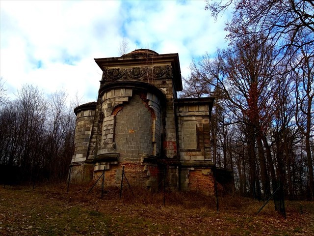Mauzoleum rodziny Woller to bardzo ciekawa, choć okrutnie zdewastowana budowla.
