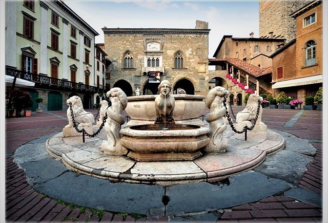 The baroque fountain is similar to those seen in Venetian squares, as it was donated to the city by Alvise Contarini, who had been sent by Venice to be Podestà (administrator) for Bergamo.