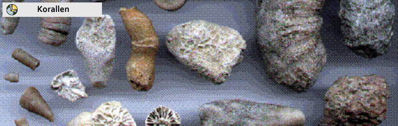 Prüfe, deine Funde, vergleiche sie mit den vorgestellten 3 Collagen (Gesteine, Fossilien, Korallen) und teile in einem kurzen Bericht mit, ob du repräsentativ daraus eine Erkenntnis gewinnen konntest.