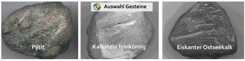 seht ihr eine Auswahl an Gesteinen, die man hier finden kann: