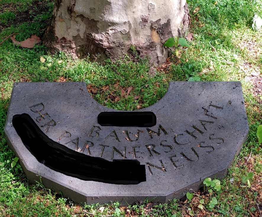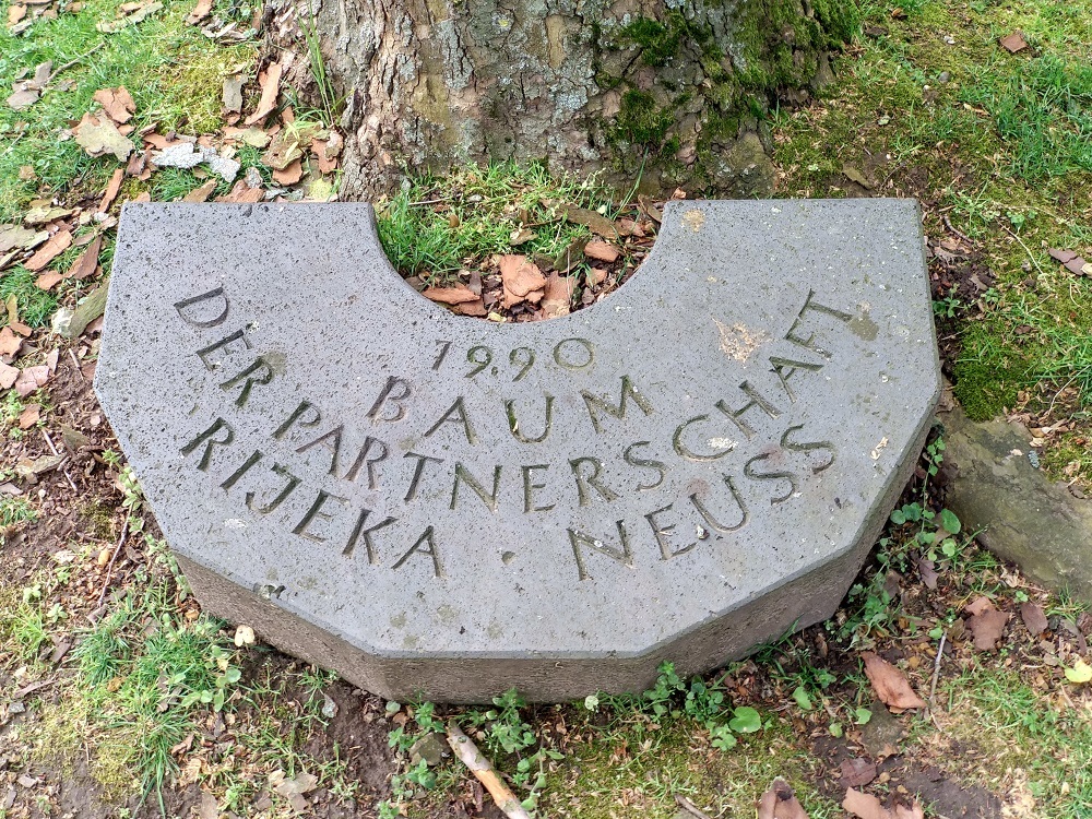In einem der innerstädtischen Neusser Parks, unweit (<100m) des "Wasserrads", befindet sich dieser Stein.