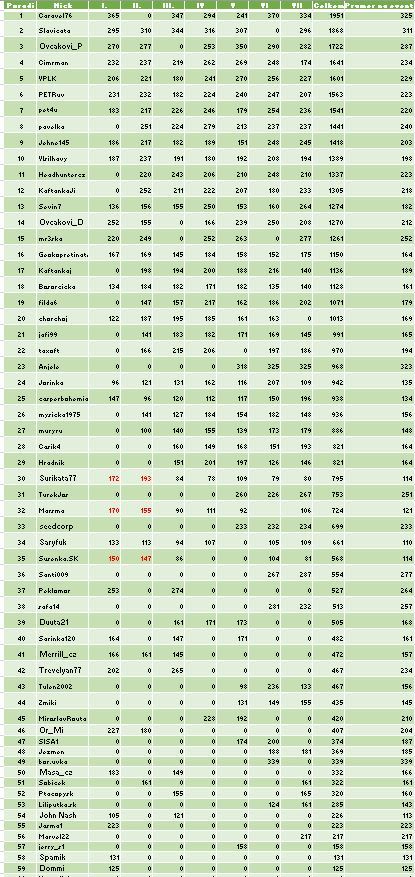 - Vitezem sezony bude hrac s nejvyssim souctem bodu za obe hry vsech eventu, kterych se ucastnil. Nezalezi jen na zrucnosti, lze vyvazit dochazkou :-).