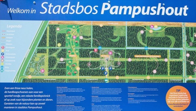 Ook deze cache ligt in het Stadsbos of park van het Pampushout. Zelf zegt het Flevolandschap op hun site "In een jaar tijd is Pampushout Zuid getransformeerd van polderbos naar stadsbos. Het bos is opnieuw ingericht en is nu veel beter toegankelijk voor bezoekers. Via het Homeruspad is het bos bereikbaar gemaakt voor wie met de auto komt. Er is een nieuw fietspad vanuit het Cascadepark, een mooie laan om over te wandelen en kronkelige paden dwars door het bos om over te struinen."