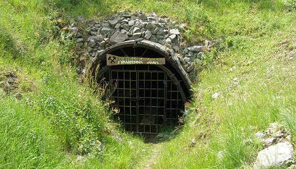 Je zmiňován ve dvou zprávách z průzkumu v roce 1947, a to jednak z aktivních vzorků z haldy šachty Kateřina a z dolového komplexu Mikuláš – Kateřina, konkrétně ze štoly Dolní Kateřina a ze slepé šachty mezi Vrchní a Dolní štolou. Tvoří velmi drobné, nicméně makroskopicky patrné šupinky. Objeven byl měřením γ-aktivity.
