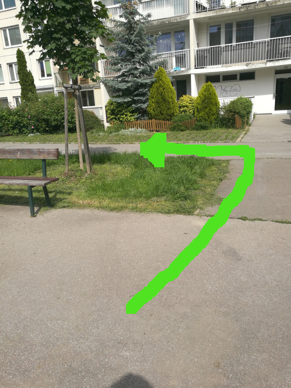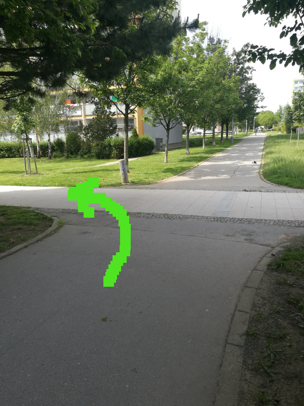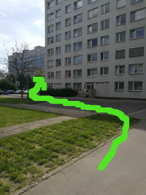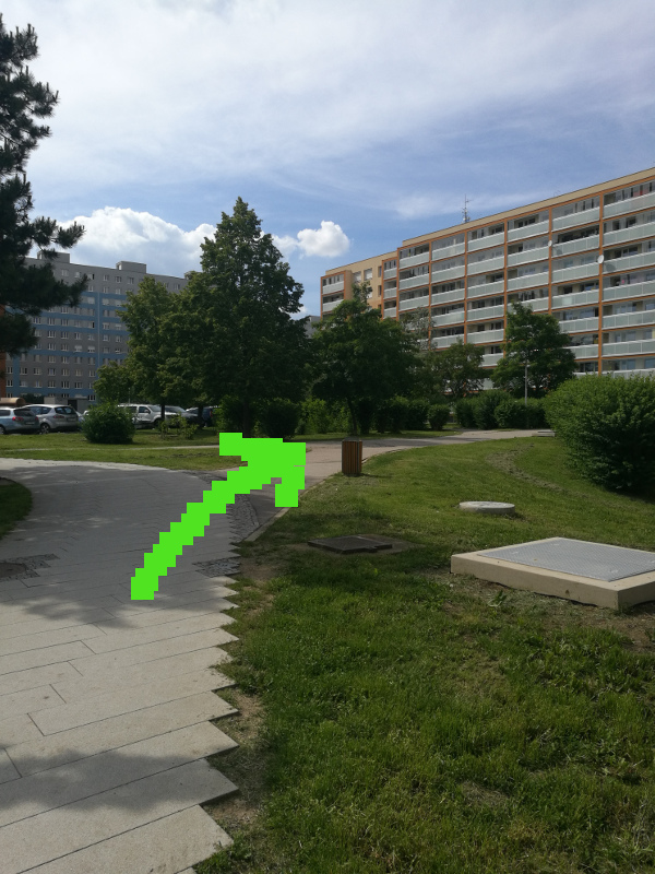 Z tramvaje jste vystoupili na uvodnich souradnicich a dale pokracujete ve smeru sipky k prvni indicii