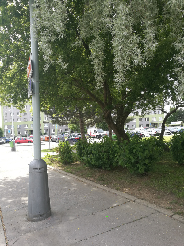 Drzte se chodniku,pres krizeni rovne, az narazite na misto s vyhledem na lampu a strom z fotky. Deti muzete cestou zanechat na hristaku, kolem ktereho cesta vede.